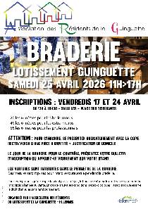 BRADERIE DE LA GUINGUETTE, organisée par L'ASSOCIATION DES RESIDENTS DE LA GUINGUETTE, le samedi 25 avril 2026 de 11 heures à 17 heures