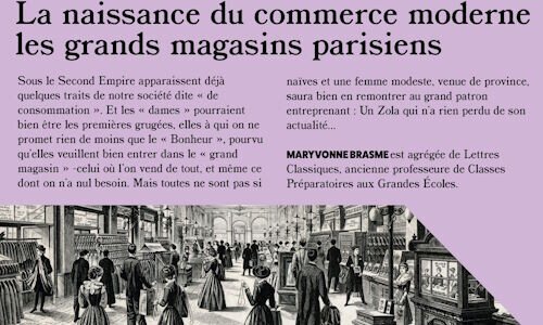 Sous le Second Empire apparaissent déjà quelques traits de notre société dite « de consommation ». Et les « dames » pourraient bien être les premières grugées, elles à qui on ne promet rien de moins que le « Bonheur », pourvu qu'elles veuillent bien entrer dans le « grand magasin » -celui où l'on vend de tout, et même ce dont on n'a nul besoin.