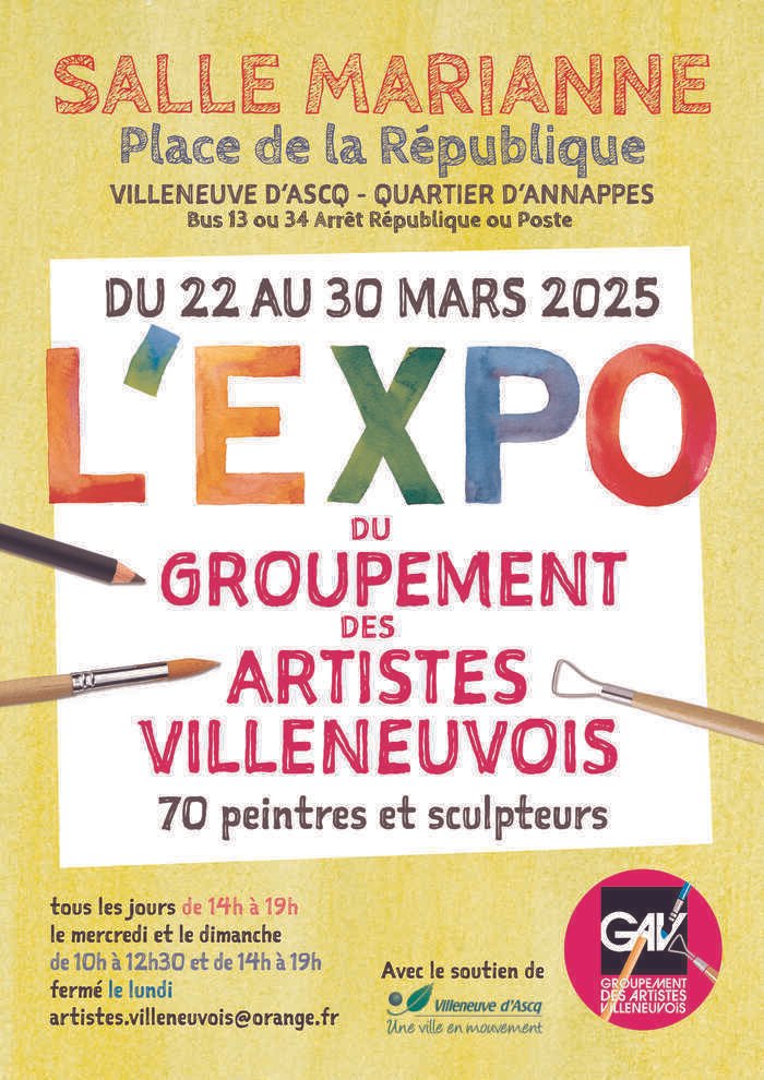 Le groupement des artistes villeneuvois est une association créée en 1975 réunissant 130 adhérents, artistes et amateurs avertis , en peinture, aquarelle, pastel, dessin, gravure, modelage et sculpture.